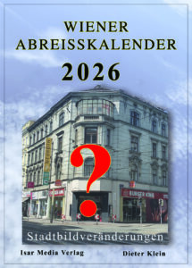 Sollten Sie oder Ihre Freunde Fotos von weiteren Beispielen haben, die in einen Abreisskalender passen würden, senden Sie uns bitte eine kurze Mail an agentur.wien@isar.media oderinfo@dieter-klein.at. Wir danken Ihnen jetzt schon für Ihre Mithilfe die Stadtbildveränderungen weiter zu dokumentieren.
